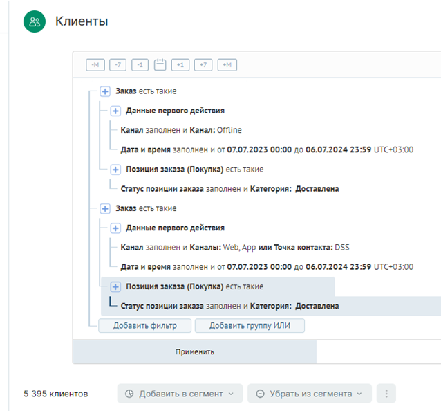ТТ предоставил список клиентов, которые выгружены из MB по фильтрам со скрина.