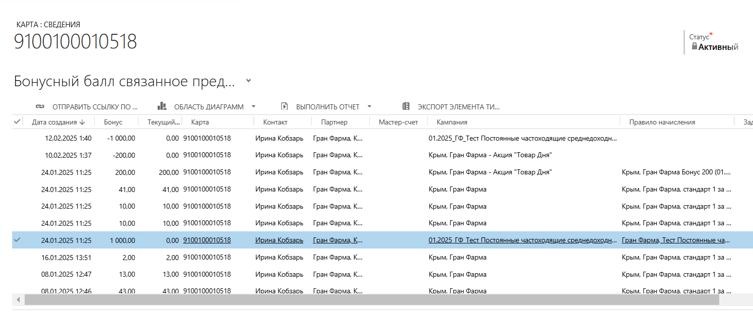 Карта 9100100010518, начислено 1000б по чеку 24.01, сгорели 12.02.
