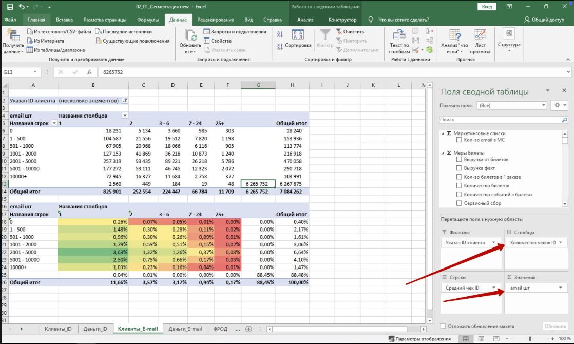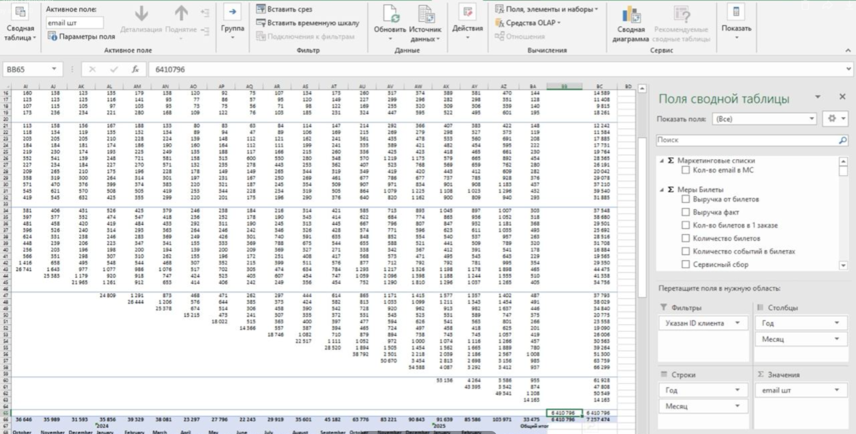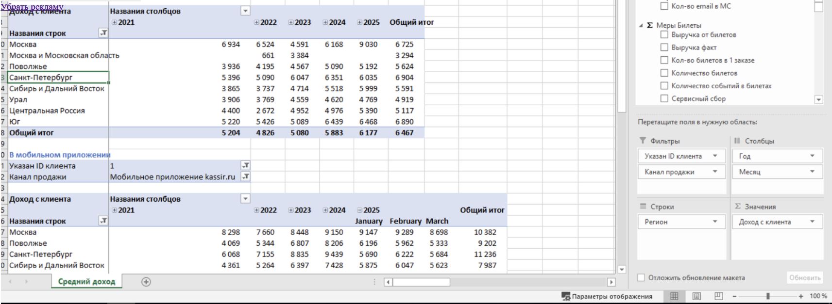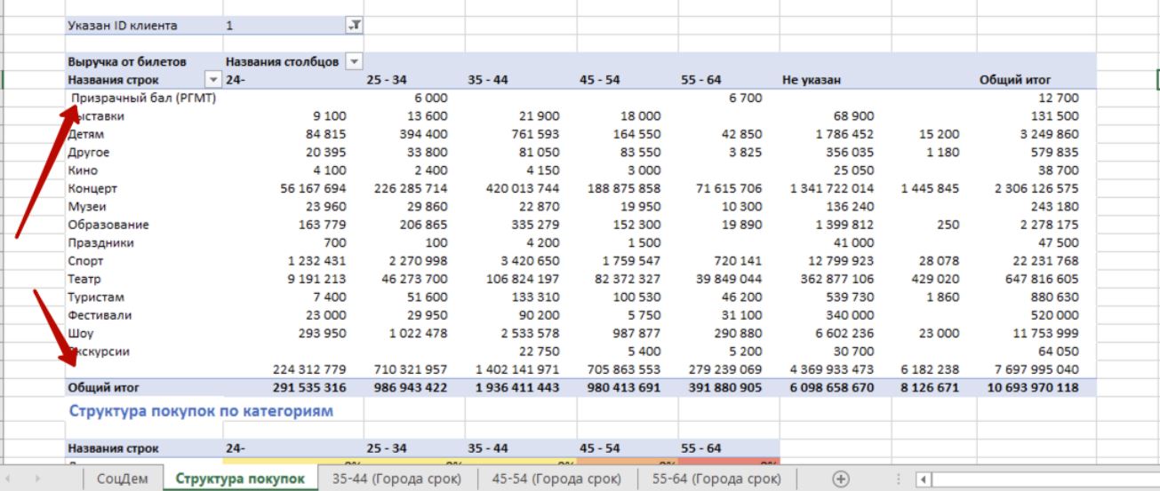 3. В отчете были неверно выбраны поля в строках и столбцах, поэтому значения не раскладывались. Поправила. Нужно будет переложить отчет клиенту.