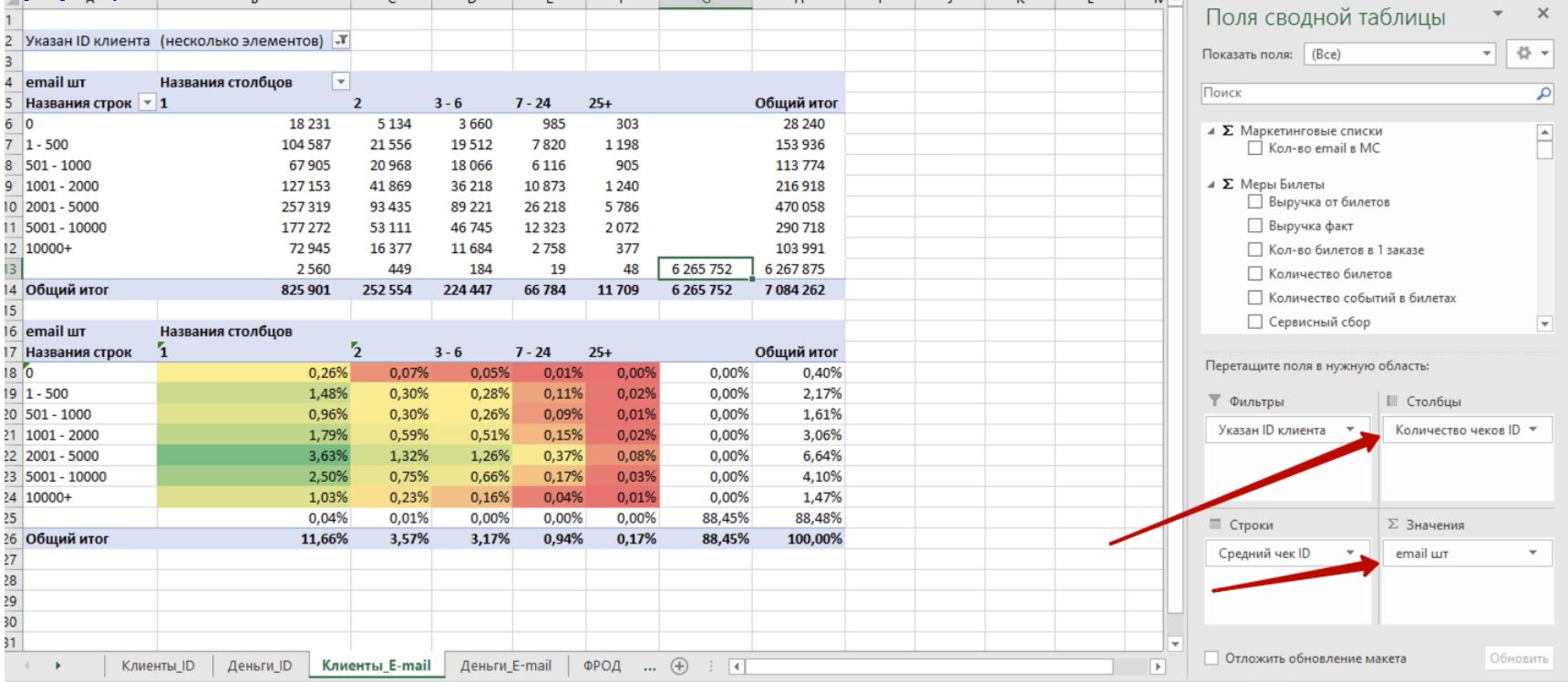 Отток_мес_e-mail обновила - 6 млн нераспределенных заказов на месте, проблема сохраняется. Проверьте, пожалуйста, настройки таблицы. Мне кажется, есть проблема привязки заказов к категориям. Если смотреть выручку по билетам в привязке к категории - все ок, а вот заказы не распределяются по категориям
