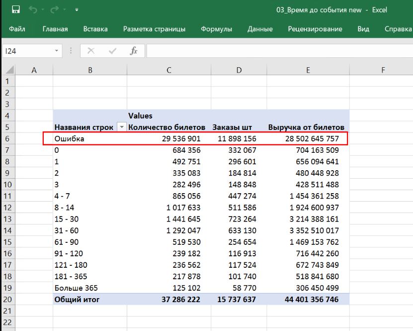 1) Разобраться с ошибкой, из-за которой по большинству продаж не посчитались дни от покупки до мероприятия? (скрин "Дни от покупки до мероприятия")