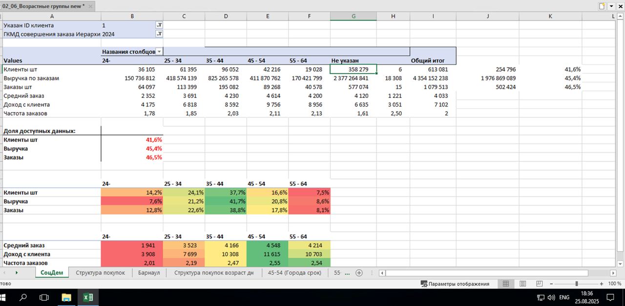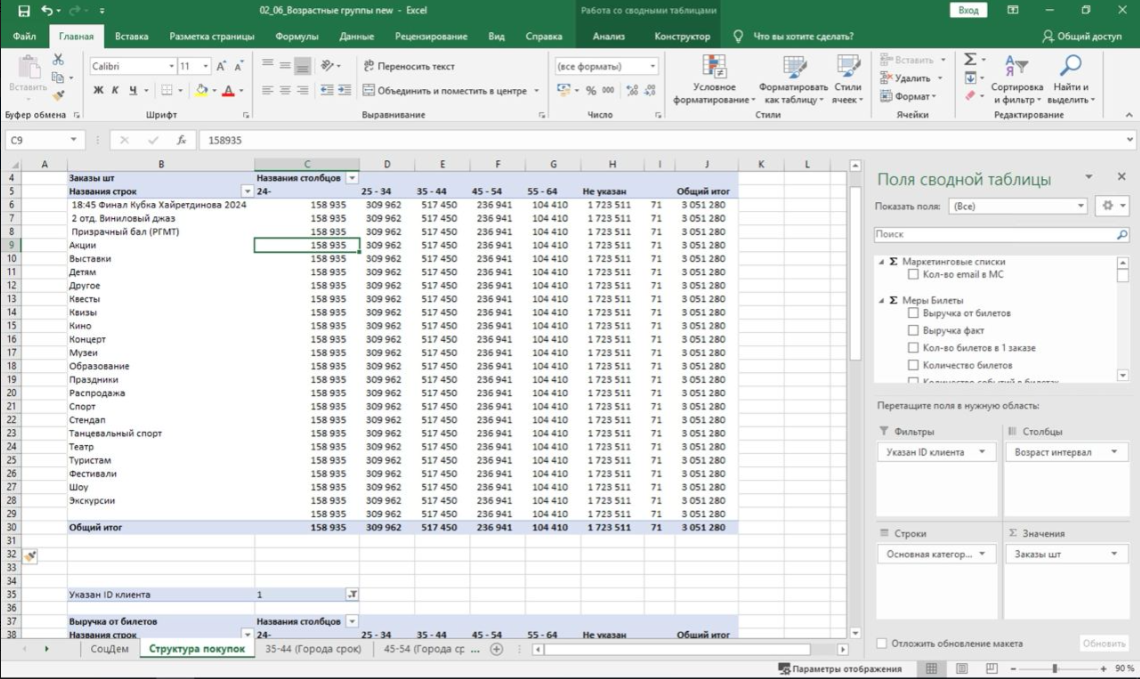 Отчет 02_06_Возрастные группы new - проблема была в привязке заказов к категориям - см. скрин по всем категориям одинаковое кол-во заказов. Проблема сохраняется, отчет обновлен