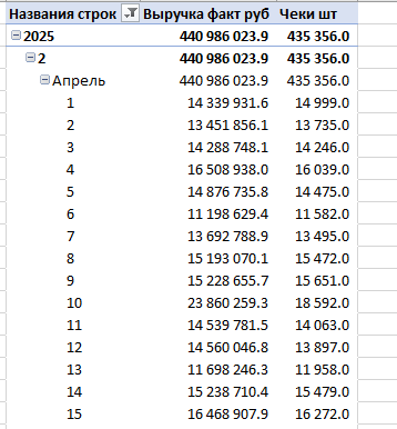 В сегментаторе ГФ отображается некорректная выручка за апрель с 3 по 9 число. Вместо миллионов, миллиарды.