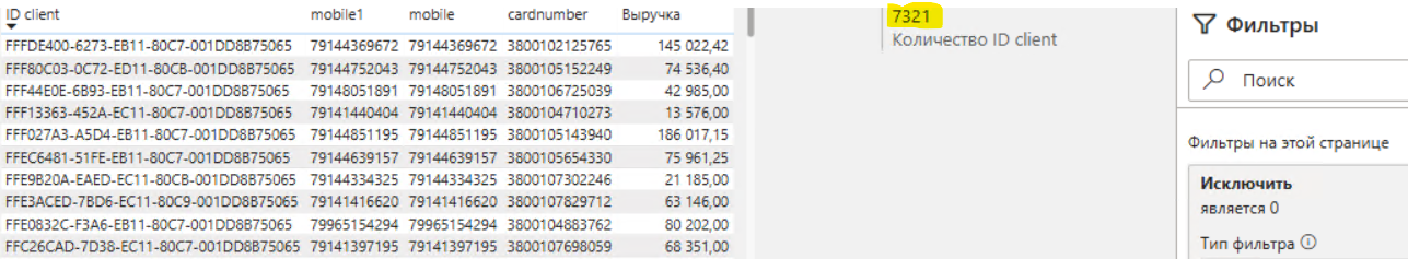 Публикую выгрузку в куб - этих клиентов тоже становится 7321.