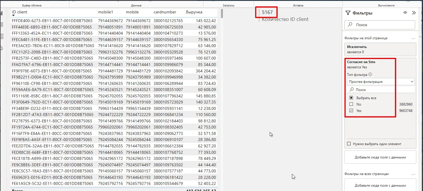 Нужен фильтр Согласие на СМС на вкладке Выгрузка сегмента