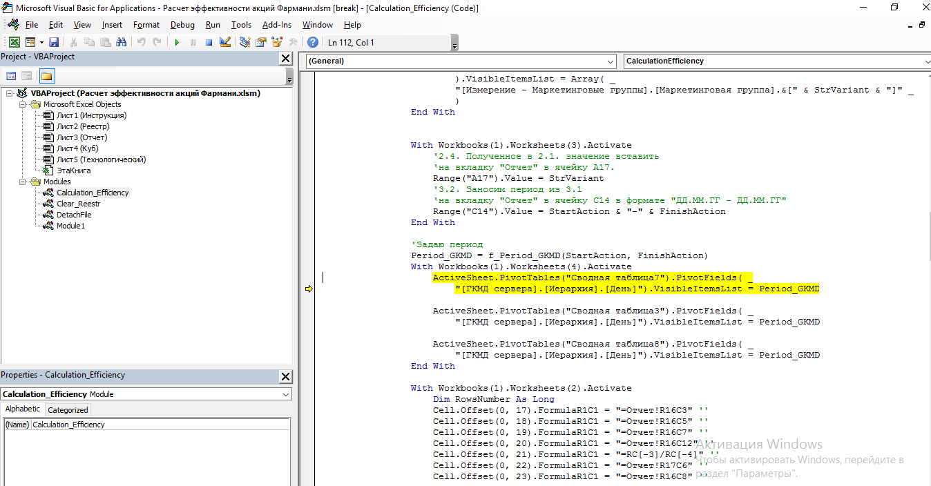 Сам макрос находится: E:\0 - Анастасия К\1 НАС\Расчет акций Фармани (файл Расчет эффективности акций Фармани)