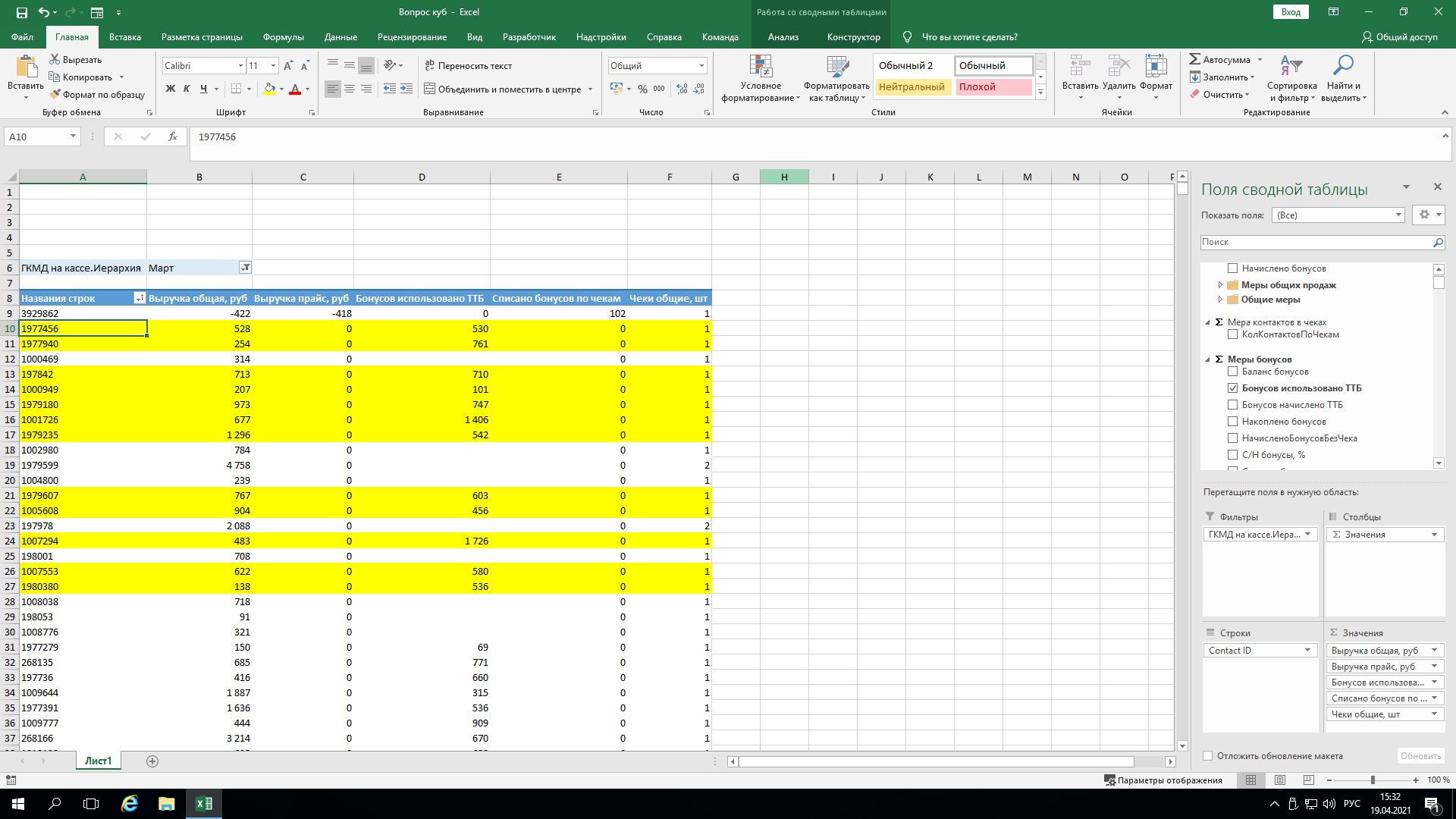 В данных за март 2021 есть расхождения таблиц Bonuses и Cheque.