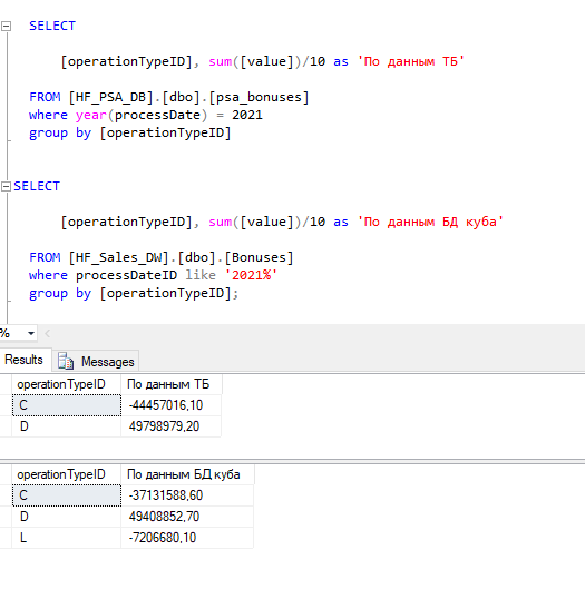 При переносе таблицы [HF_PSA_DB].[dbo].[psa_bonuses] из транзитной базы в таблицу [HF_Sales_DW].[dbo].[Bonuses] базы данных куба происходит некорректное определение типа операции (списано, начислено, сгорело). Конкретно, списано распределяется на списано и сгорело, что некорректно. Скрин приложен.