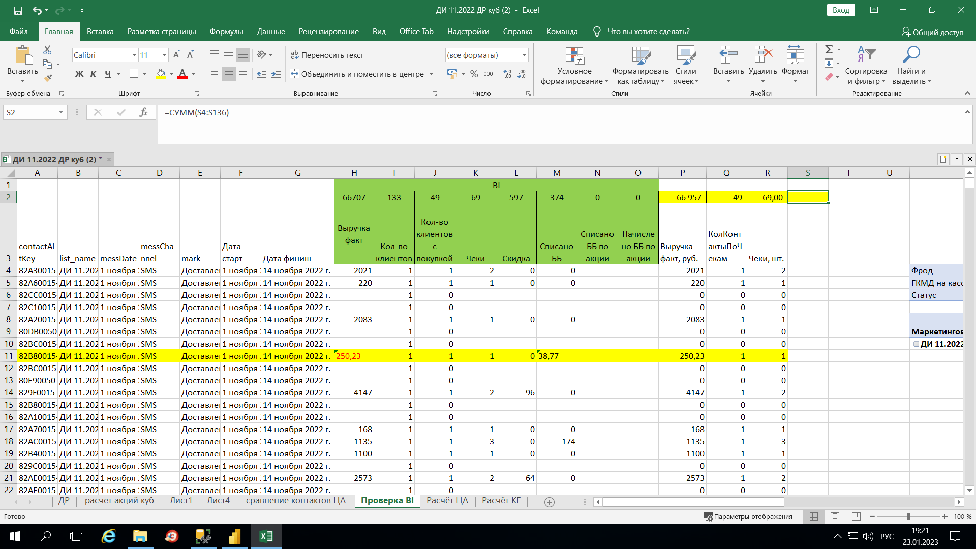 1. контакты Доставлено в BI и в КУБе (см файл ДИ 11.2022 ДР куб; вкладка - сравнение контактов ЦА). Часть контактов не были сопоставлены.