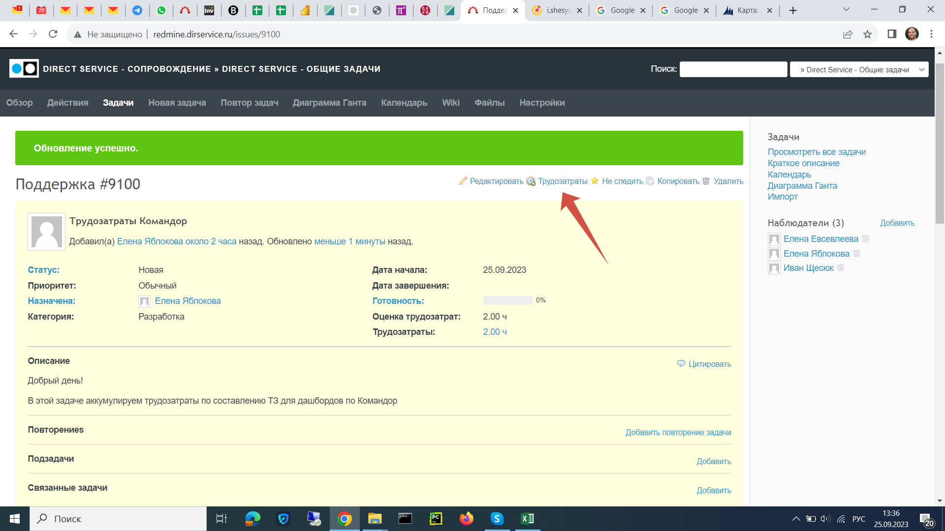 - Параметр Оценка трудозатрат изменился с 2.00 на 50.00